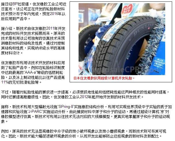 日本住友橡膠將用超級(jí)計(jì)算機(jī)開(kāi)發(fā)輪胎新材料技術(shù)